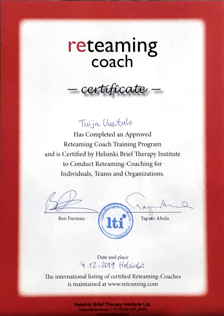 Lyhytterapiainstituutin perustajat ja kouluttajat Tapani Ahola ja Ben Furman kehittivät 90-luvulla yritysten ja organisaatioiden tarpeisiin ratkaisukeskeisen valmennusmenetelmän, jolle he antoivat nimeksi reteaming.